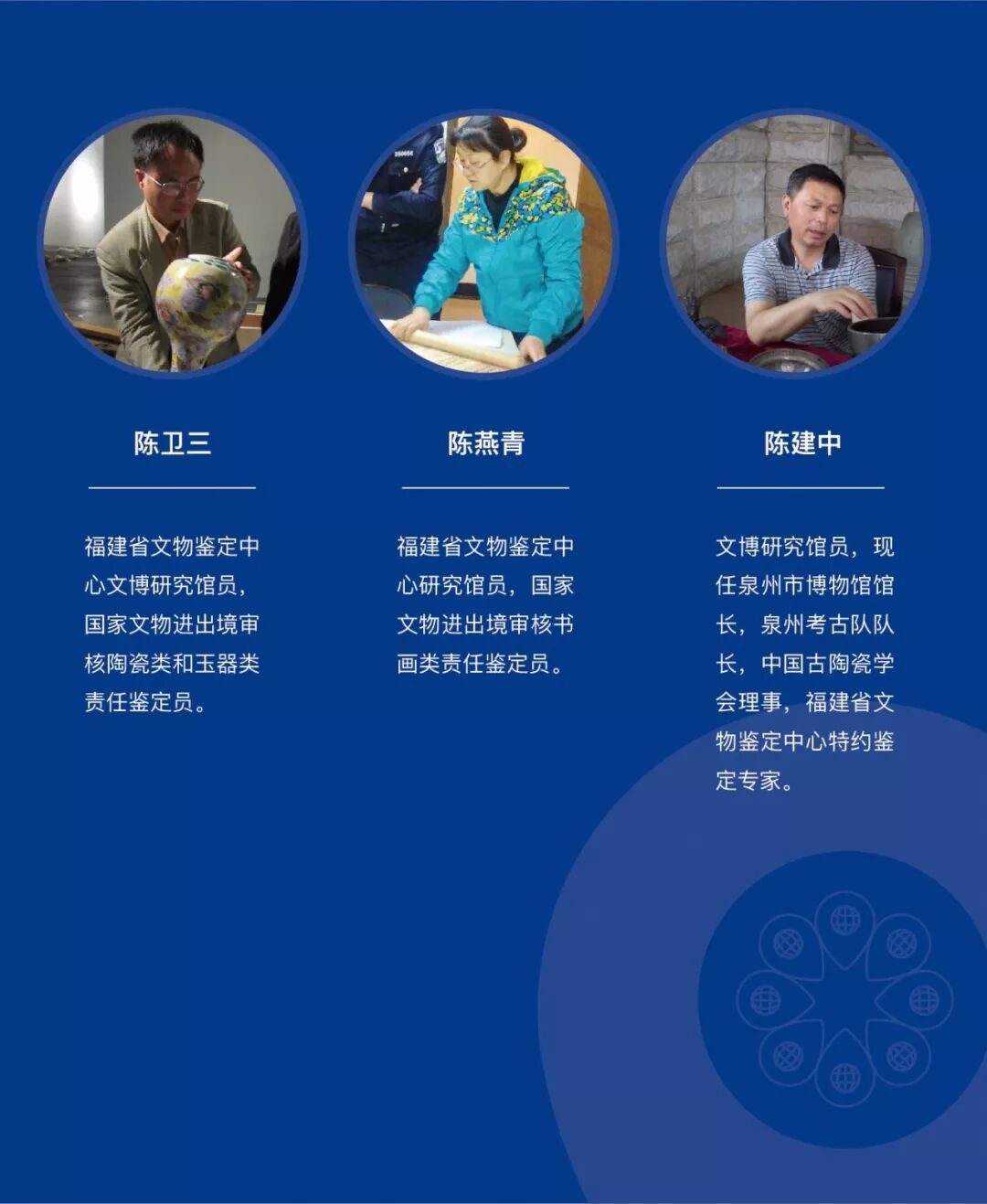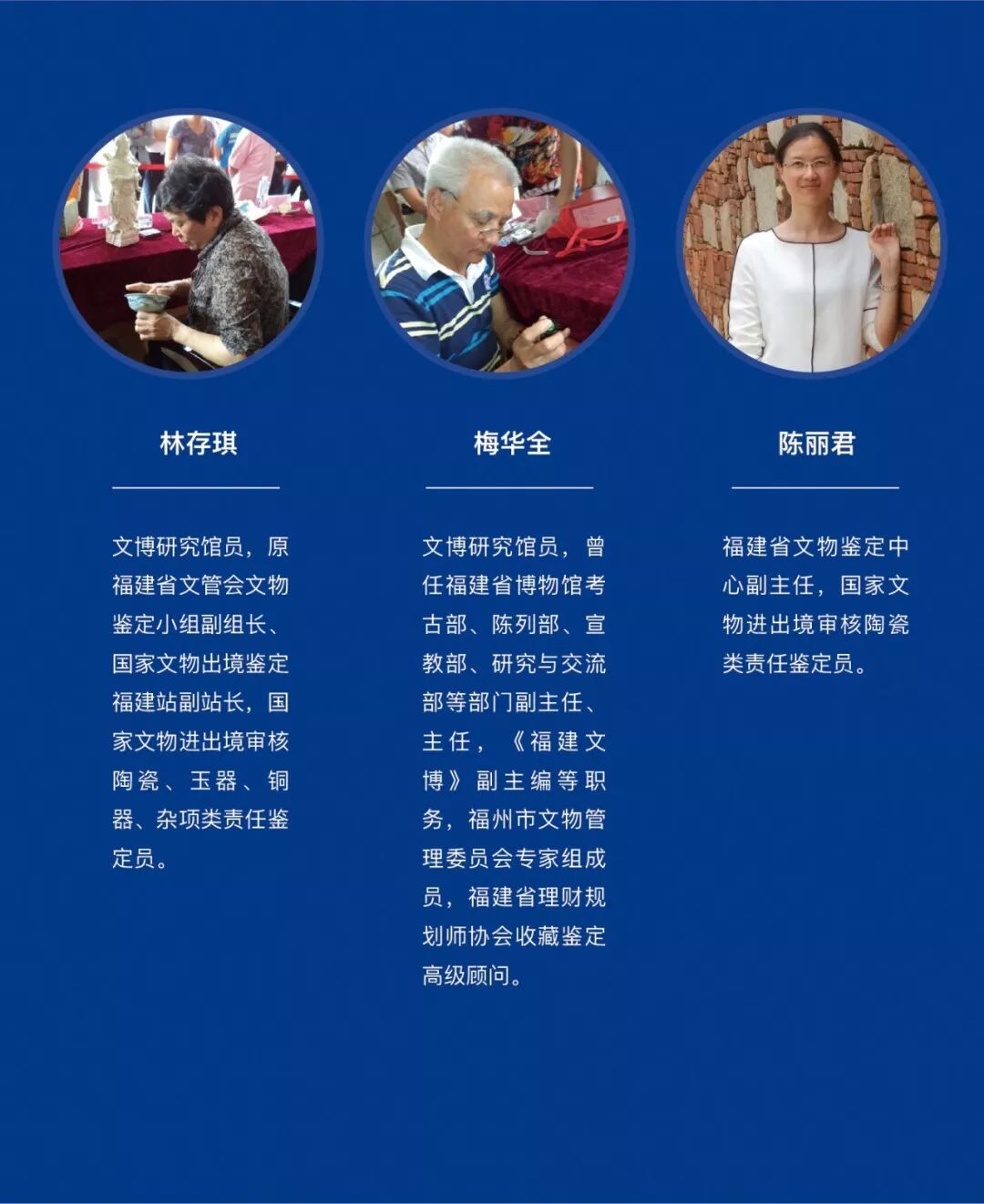 為了更好地保護文物,鼓勵民眾體驗博物館的文化,讓普通民眾與博物館事業連接起來。此次鑒寶活動擬邀請省、市文物鑒定專家梅華全、林存琪、陳衛三、陳燕青、陳麗君、陳建中為社會各界收藏愛好者免費鑒寶。